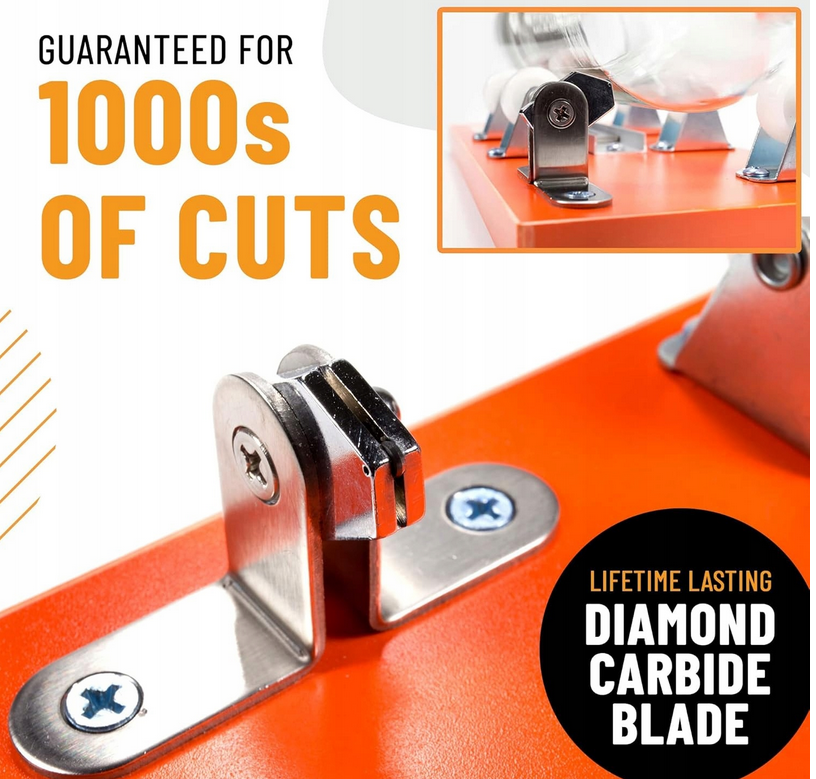 Precyzyjne narzędzie tnące – ten wysokiej jakości zestaw do cięcia szklanych butelek i obcinacza do szkła jest lekki i bardzo łatwy w użyciu dla początkujących. Łatwo regulowana konstrukcja pasuje do każdego rozmiaru butelki do 19,5 cm. To funkcjonalne urządzenie jest wyposażone w pięć kółek podtrzymujących, które pomagają ustabilizować butelkę w celu precyzyjnego cięcia. Bardzo mocne ostrze jest wykonane z węglika diamentu i wytrzyma do 100 000 cięć. Świetnie sprawdza się z różnymi pustymi butelkami, takimi jak butelki wina, butelki piwa, a nawet słoiki z masonem.