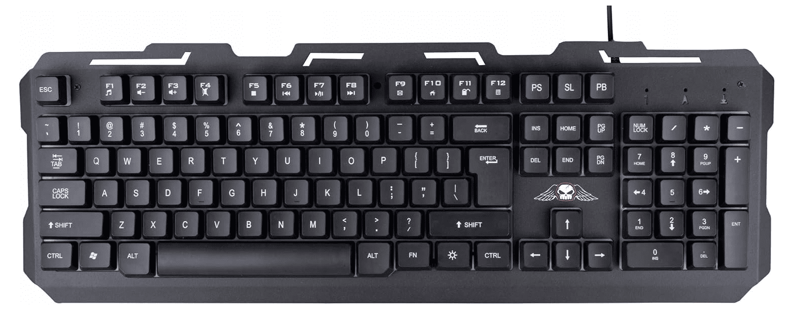 Zwiększ swoje doświadczenie gamingowe z klawiaturą gamingową No Fear! Wyposażona w 104 klawisze membranowe, ta klawiatura QWERTY zapewnia płynność i precyzję, których potrzebujesz w każdej grze. Dzięki oświetleniu LED RGB w 7 kolorach, zyskasz dynamiczną atmosferę i wygodę, a wysokiej jakości metalowa konstrukcja zapewnia trwałość i odporność na intensywne użytkowanie.