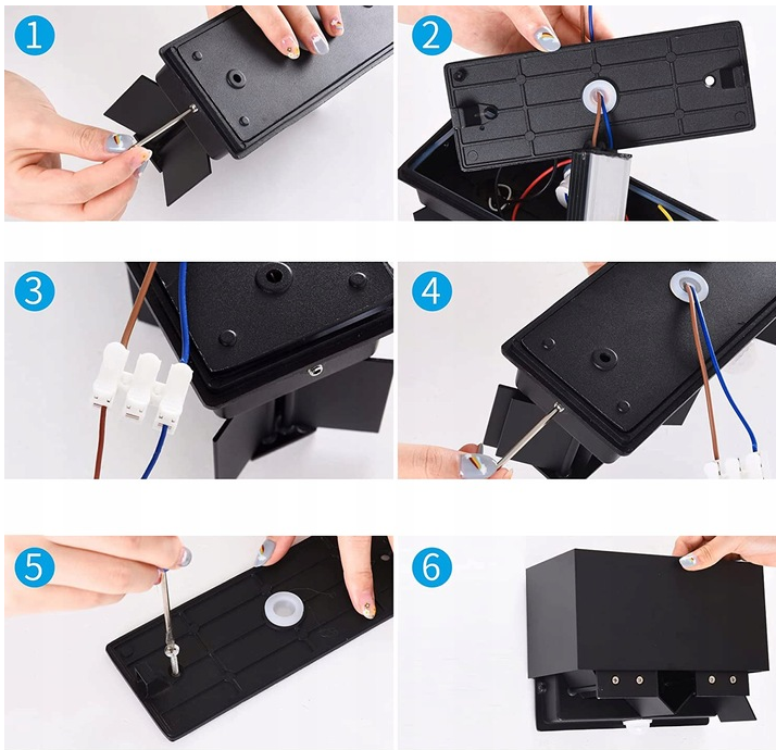 - Cała lampa ścienna LED jest wykonana z czystego aluminium wewnątrz i na zewnątrz. Dobre malowanie, antyutlenianie, wysokowydajna dioda COB, wysoka wydajność, oszczędność energii i ochrona środowiska.