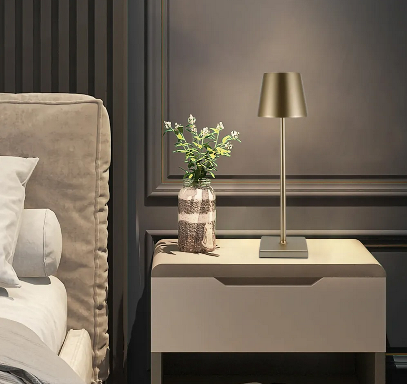 Złota lampka nocna LED WDL-02 – bezprzewodowa elegancja i funkcjonalność w jednym.