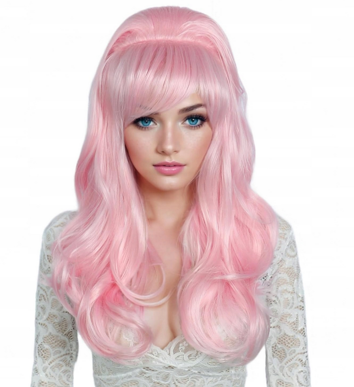 Peruka Linfairy rożowa dla kobiet, pasująca do kostiumów z lat 50. i 80.