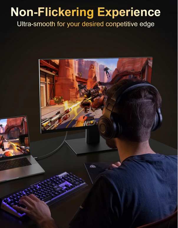 - Kabel Displayport do USB C jest kompatybilny z technologiami FreeSync i G-Sync, co skutecznie redukuje rozrywanie i zacinanie się obrazu, gwarantując płynne i wciągające wrażenia podczas grania lub oglądania. Kabel jest również kompatybilny z technologią Multi-Stream (MST) umożliwiającą łączenie wielu monitorów. Wysoka przepustowość 32,4 Gb/s: dzięki wysokiej prędkości przesyłu danych 32,4 Gb/s, ten kabel Thunderbolt zapewnia ultraszybką i niezawodną łączność, gwarantując stabilne i niezawodne połączenie. Gwarantuje stabilną transmisję sygnału i eliminuje migotanie i czarny ekran. Kabel USB-C do Displayport zapewni Ci niesamowite wrażenia audiowizualne. Umożliwia dublowanie lub rozszerzanie ekranu, a kabel działa również w trybie muszli.