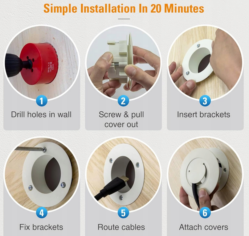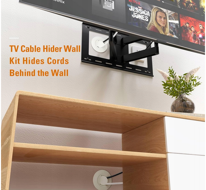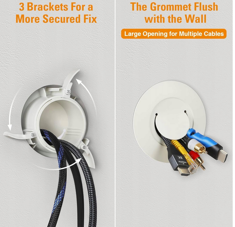 【Elastyczna osłona przelotki i wytrzymały uchwyt】: Nasza osłona na kable jest elastyczna i zapewnia dużo miejsca na przeciągnięcie grubych kabli. Specjalnie zaprojektowany uchwyt zapewnia solidne mocowanie do ściany i przylega do niej. W razie potrzeby ponownego montażu wystarczy przykręcić i wyciągnąć osłonę – jest prosta i wygodna.